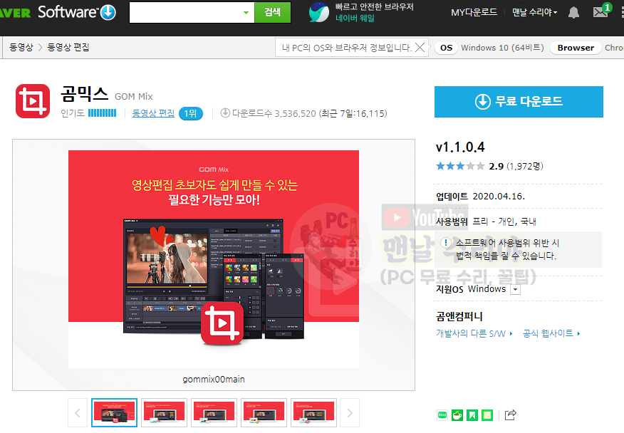 고무믹스 홈페이지에 들어가시면 오른쪽에 있는 무료 다운로드 버튼을 클릭합니다.