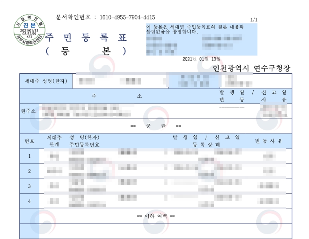 주민등록등본은 서류 중에서도 가장 많이 발급되는 서류로 가구에 대한 기록을 나타낸 서류이며, 한 가구의 세대주나 가구를 구성하는 구성원이 기재되어 있습니다. 예전에는 발급받으려면 직접 방문해야 했지만 최근에는 정부24라는 사이트에서 온라인으로 수수료 없이 발급받을 수 있기 때문에 많은 사람들이 주민등록등본을 정부24로부터 인터넷으로 발급받고 있습니다. 인터넷 발급은 번거롭게 관공서를 방문해야 하는 시간 제한 없이 집에서도 발급할 수 있어 매우 편리해졌습니다. 주민등록등본은 정부24에서 인터넷 발급방법