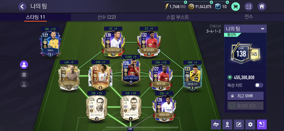 오늘은 FIFA FC 온라인에서 엄청난 + 가속력으로 전체적으로 빠른 맨유 스쿼드를 맞춰봤습니다.요즘 바로 판매 기능으로 약간의 팀 가치가 상승한 상태라 원래는 5-6천억 정도의 팀 가치였는데 요즘 부쩍 올라서 1조를 훌쩍 넘었네요.. 괜히 팀이 강해진 기분이네요.